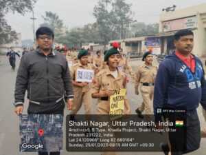 इस अवसर पर विद्यालय के एनसीसी कैडेट्स (101 यू.पी. बटालियन, मिर्जापुर) ने ए.एन.ओ./सी.टी.ओ. सूरज पांडेय के कुशल निर्देशन में, पी.ई.टी. अल्पना शर्मा एवं निखिल दत्ता की देखरेख में एक भव्य प्रभात फेरी एवं जागरूकता परेड निकाली।