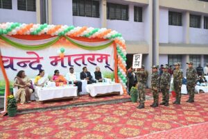 प्राचार्या श्रीमती संध्या एल. पांडेय ने अपने प्रेरणादायी संबोधन में स्वतंत्रता सेनानियों के बलिदान को नमन करते हुए भारतीय संविधान की महानता पर प्रकाश डाला और गर्वपूर्वक कहा कि भारतीय संविधान विश्व का सबसे बड़ा लिखित संविधान है।