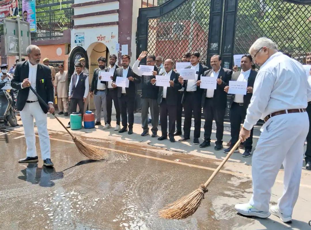वाराणसी में वकीलों ने लगाए जस्टिस वर्मा गो-बैक के नारे :- वाराणसी में न्यायालय के बाहर वकीलों ने झाड़ू लगाकर जताया विरोध March 25, 2025